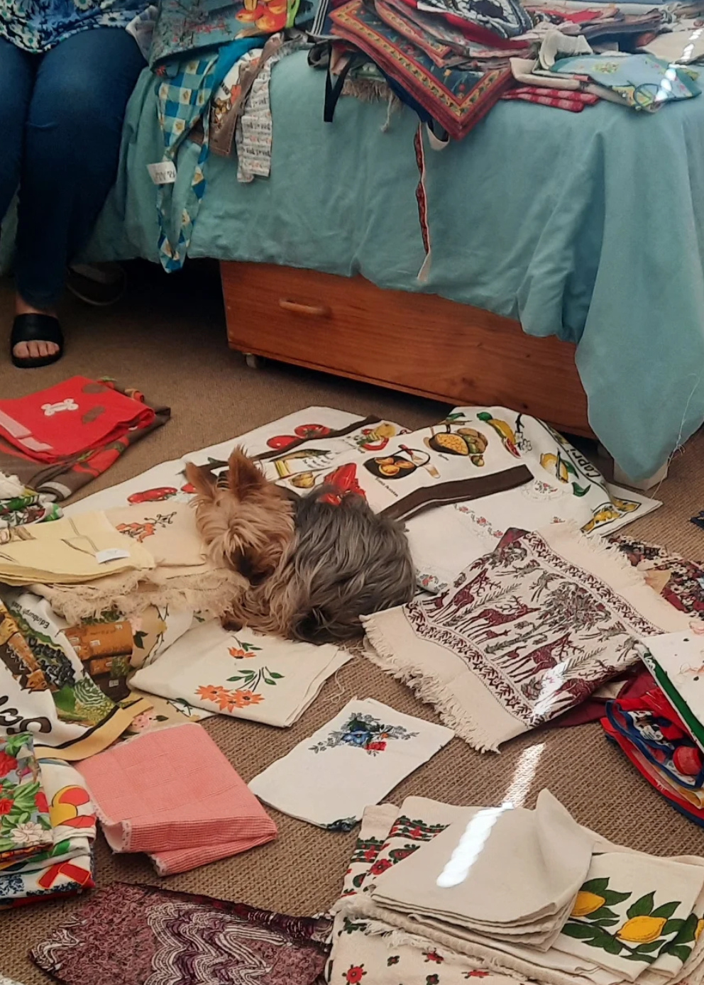 Vinkie and I always say we’re just playing with our cloths. But really, it’s a privilege. We work with forgotten fabrics that were once part of someone’s home, someone’s joy or sadness, someone’s life. To think that a woman—perhaps on a farm or in a small house—embroidered this cloth by hand, and now, decades later, it’s part of a new story… That moves me deeply.